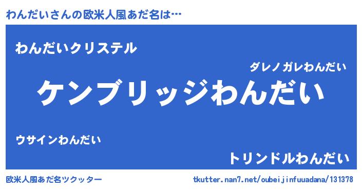 | 男性向けラノベタイトル風あだ名 | 『Re:わんだいから始める異世界生活』 |