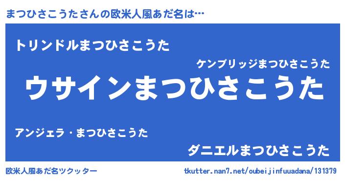| 男性向けラノベタイトル風あだ名 | 『まつひさこうたの嫁は女の子じゃないと思った?』 |