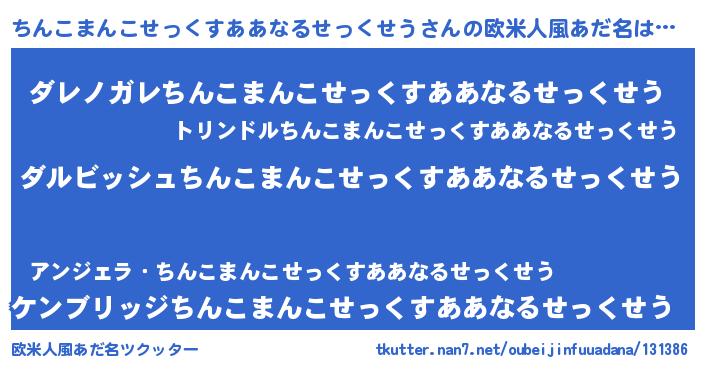 | 可愛いあだ名 | 『ちんこまんこせっくすああなるせっくせうママ』 |