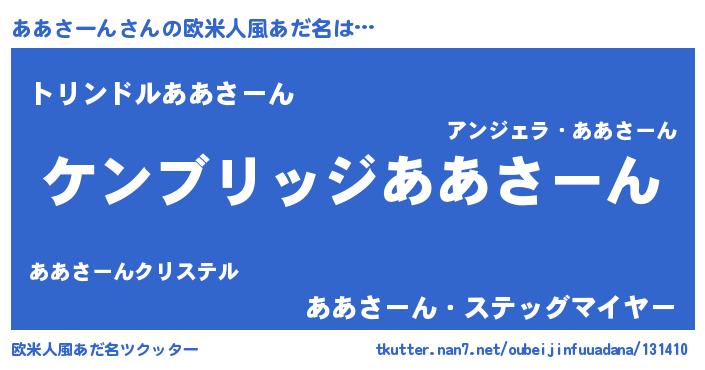 | 意味不明あだ名 | 『自称ああさーん』『永久保存ああさーん』 |