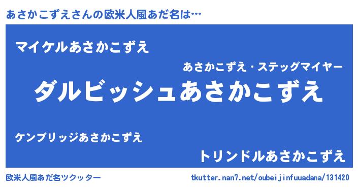 | 意味不明あだ名 | 『永久保存あさかこずえ』 |
