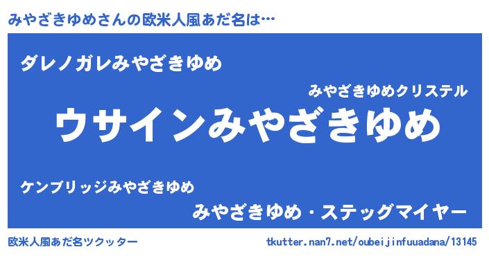 | ポケモン風あだ名 | 『ヒミヤザキユメ』『ミーヤイ』 |