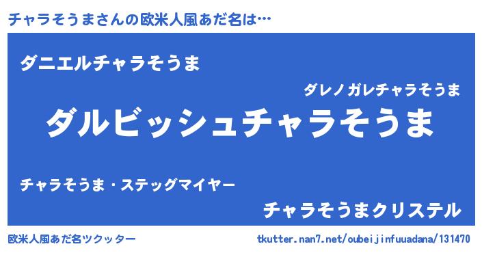 | 意味不明あだ名 | 『永久保存チャラそうま』 |