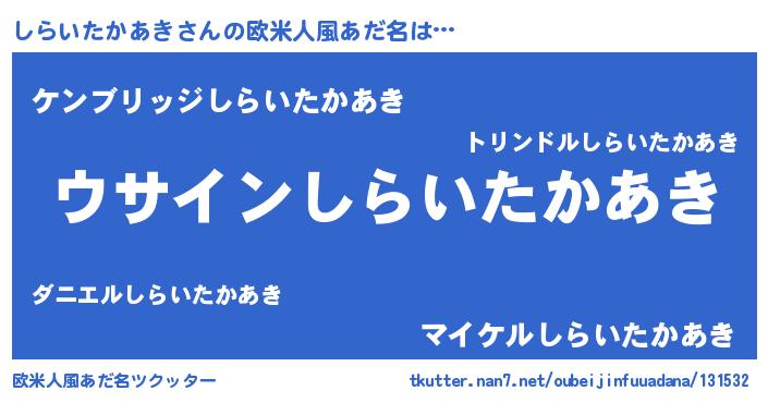 | 男性向けラノベタイトル風あだ名 | 『ダンジョンにしらいたかあきを求めるのは間違っているだろうか』 |