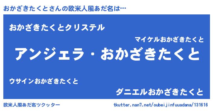 | 男性向けラノベタイトル風あだ名 | 『おかざきたくとに滅ぼされるだけの簡単なお仕事です』 |