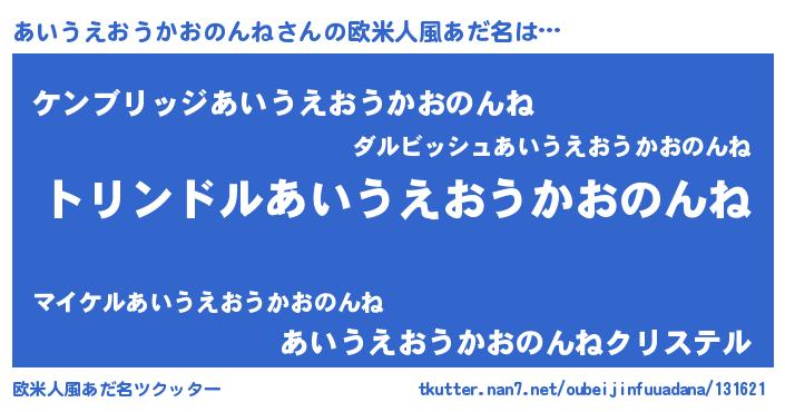 | 男性向けラノベタイトル風あだ名 | 『アイウエオウカオノンネスレイヤー』 |