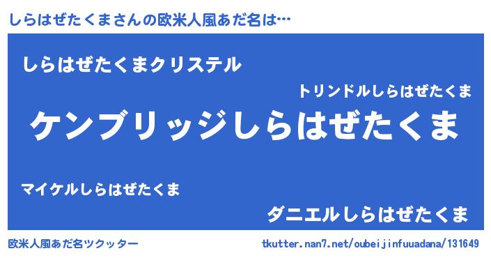 | 男性向けラノベタイトル風あだ名 | 『魔法科高校のしらはぜたくま』 |