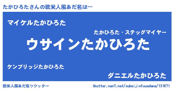 | 男性向けラノベタイトル風あだ名 | 『ダンジョンにたかひろたを求めるのは間違っているだろうか』 |