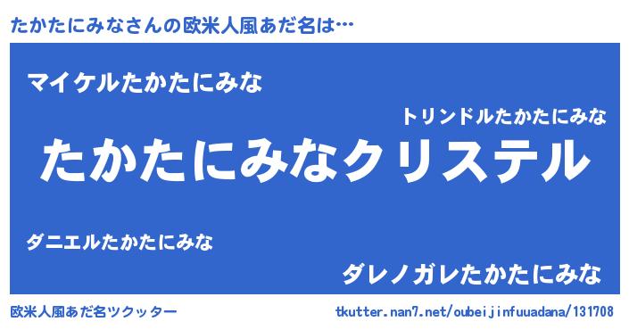| 男性向けラノベタイトル風あだ名 | 『うちの娘の為ならば、俺はもしかしたらたかたにみなも倒せるかもしれない。』 |
