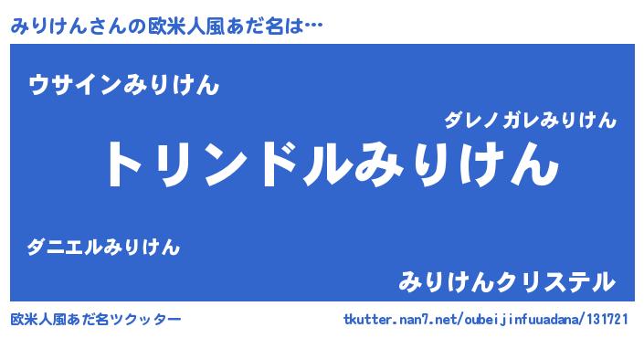 | 男性向けラノベタイトル風あだ名 | 『ミリケンスレイヤー』 |