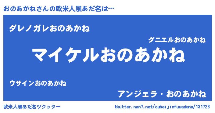 | 男性向けラノベタイトル風あだ名 | 『おのあかねの憂鬱』 |