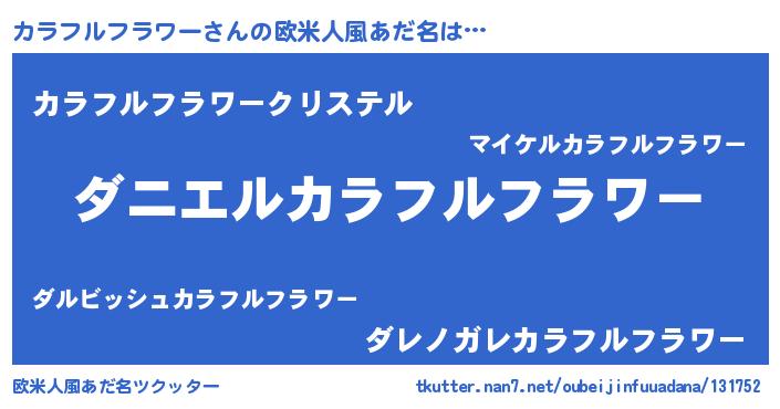 | 男性向けラノベタイトル風あだ名 | 『おまえをオタクにしてやるから、俺をカラフルフラワーにしてくれ! 』 |