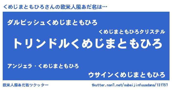 | ヘコむあだ名 | 『くめじまともひろ(小並感)』『くめを』 |