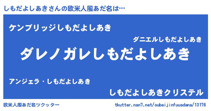 | 男性向けラノベタイトル風あだ名 | 『この素晴らしい世界にしもだよしあきを!』 |