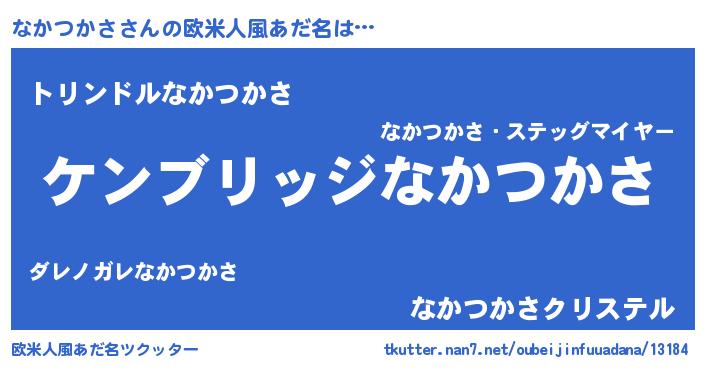 | 男性向けラノベタイトル風あだ名 | 『Re:なかつかさから始める異世界生活』 |