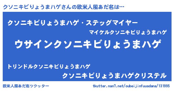 | ポケモン風あだ名 | 『ヒクソニキビリョウマハゲ』 |