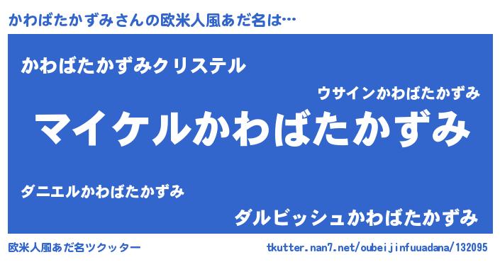 | 女子向けラノベタイトル風あだ名 | 『(仮)かわばたかずみのやんごとなき事情』 |