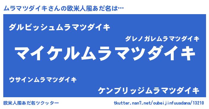 | 男性向けラノベタイトル風あだ名 | 『ムラマツダイキアートオンライン』 |