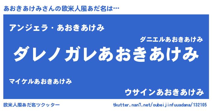| 意味不明あだ名 | 『住所不定無職あおきあけみ(86歳)』 |