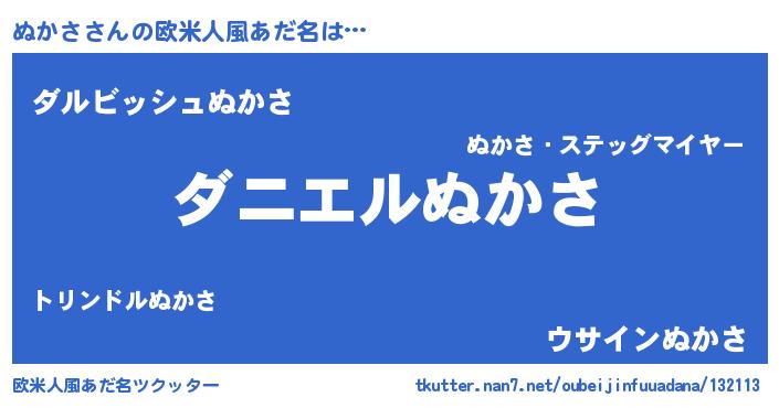 | 料理風あだ名 | 『ぬかさのトマト煮』『ぬかさごはん』 |