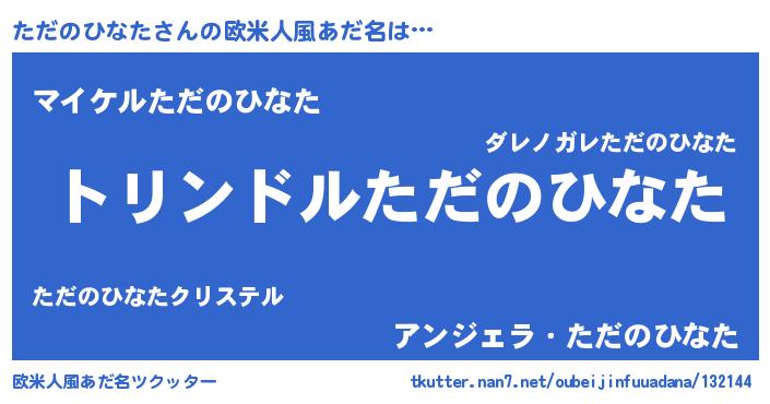 | 男性向けラノベタイトル風あだ名 | 『ただのひなた~年齢イコール彼女いない歴の魔法使い~』 |