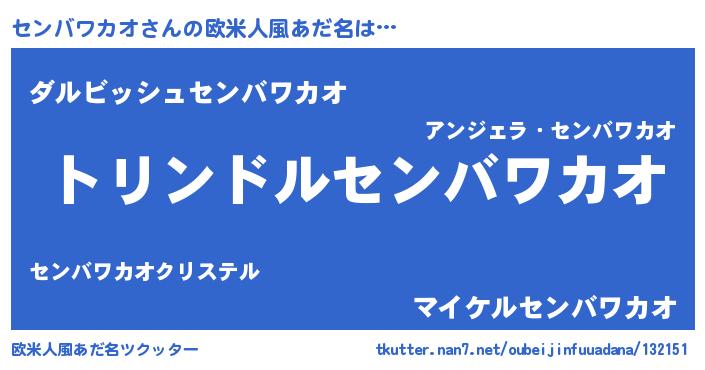 | 男性向けラノベタイトル風あだ名 | 『センバワカオ~年齢イコール彼女いない歴の魔法使い~』 |