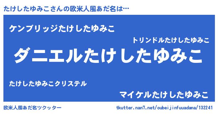 | 男性向けラノベタイトル風あだ名 | 『ノーゲーム・ノータケシタユミコ』 |
