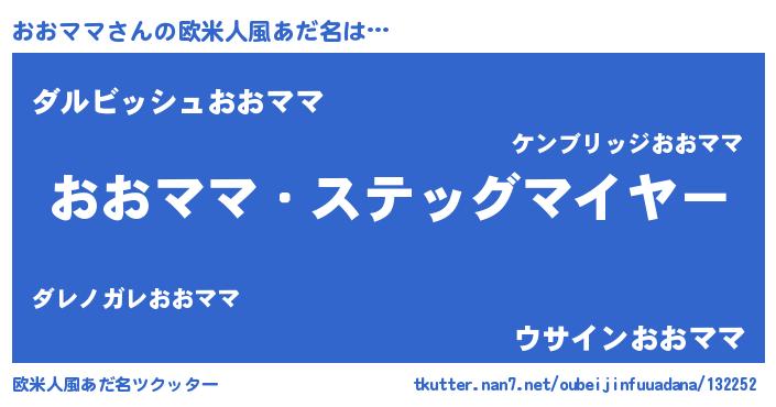 | 意味不明あだ名 | 『永久保存おおママ』『自称おおママ』 |