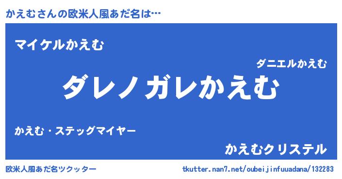 | 男性向けラノベタイトル風あだ名 | 『この素晴らしい世界にかえむを!』 |