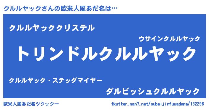 | 男性向けラノベタイトル風あだ名 | 『転生したらクルルヤックだった件』 |