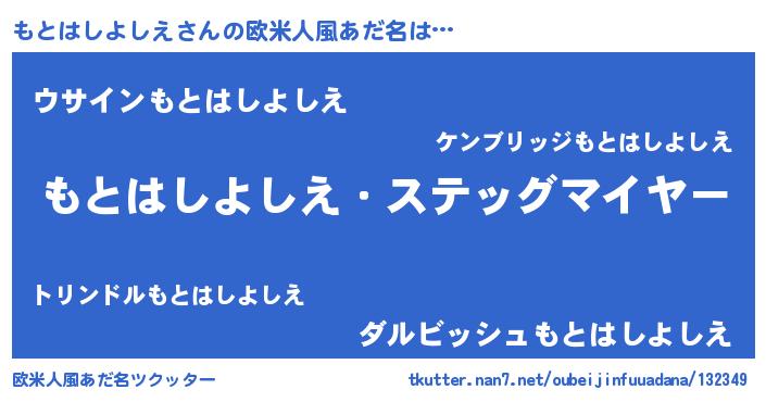 | 男性向けラノベタイトル風あだ名 | 『うちのもとはしよしえが世界を掌握している!』 |