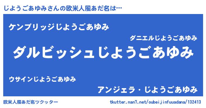 | 男性向けラノベタイトル風あだ名 | 『じようごあゆみという概念が存在しない退屈な世界 』 |