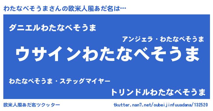 | ポケモン風あだ名 | 『ヒワタナベソウマ』『ワックウザ』 |