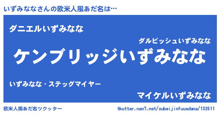 | 男性向けラノベタイトル風あだ名 | 『Re:いずみななから始める異世界生活』 |