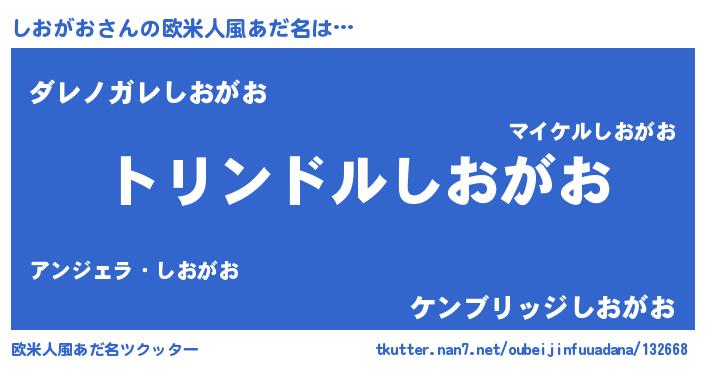 | 男性向けラノベタイトル風あだ名 | 『転生したらしおがおだった件』 |