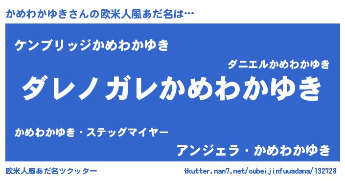 | 意味不明あだ名 | 『住所不定無職かめわかゆき(8歳)』 |