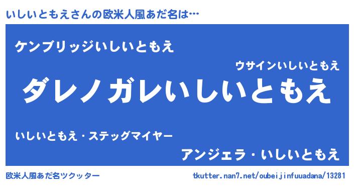 | 男性向けラノベタイトル風あだ名 | 『魔弾の王といしいともえ』 |