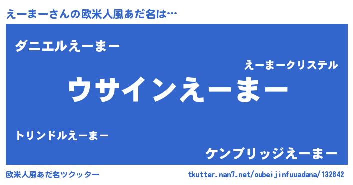 | 男性向けラノベタイトル風あだ名 | 『えーまーの嫁は女の子じゃないと思った?』 |