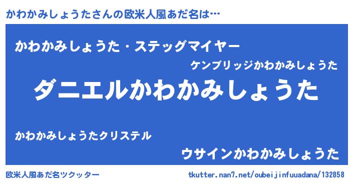 | 女子向けラノベタイトル風あだ名 | 『かわかみしょうた恋絵巻』 |