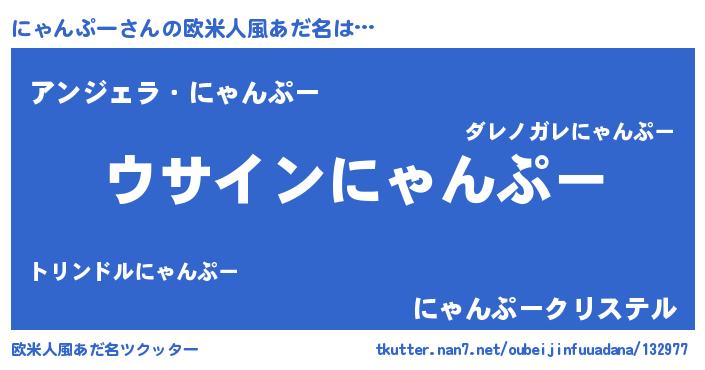 | 男性向けラノベタイトル風あだ名 | 『にゃんぷーの嫁は女の子じゃないと思った?』 |