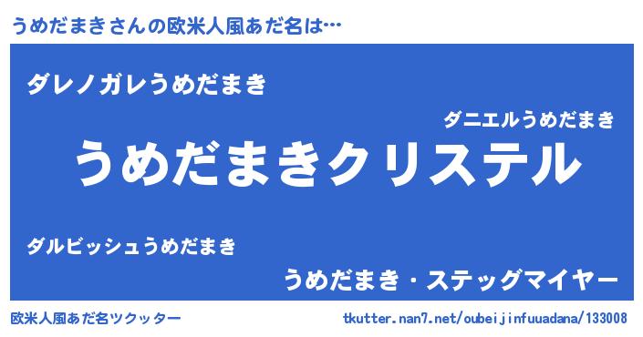 | ポケモン風あだ名 | 『ウメダダネ』『ウーメイ』 |