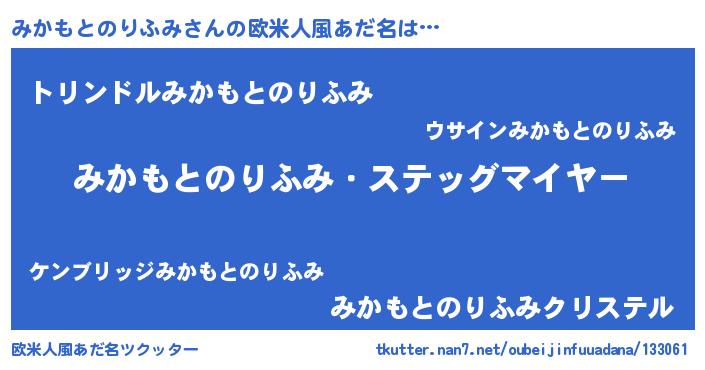 | 女子向けラノベタイトル風あだ名 | 『シンデレラみかもとのりふみ家の靴箱館』 |