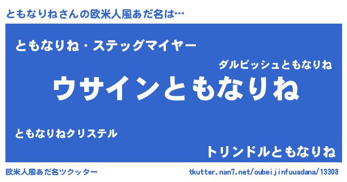 | 男性向けラノベタイトル風あだ名 | 『ともなりねの嫁は女の子じゃないと思った?』 |