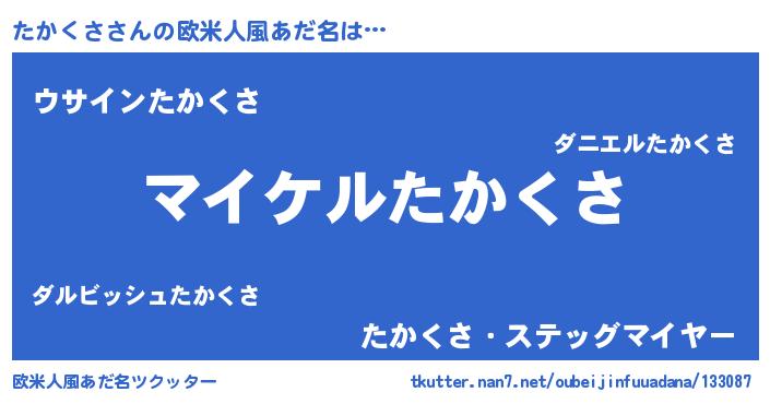 | 男性向けラノベタイトル風あだ名 | 『たかくさの憂鬱』『緋弾のタカクサ』 |