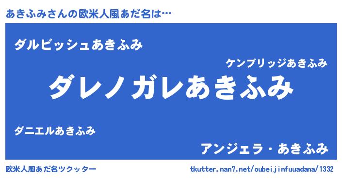 | 男性向けラノベタイトル風あだ名 | 『魔弾の王とあきふみ』 |