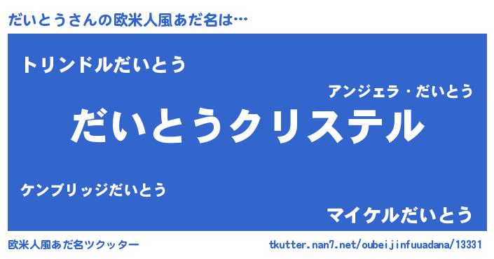 | 男性向けラノベタイトル風あだ名 | 『やはりだいとうの青春ラブコメはまちがっている 』 |