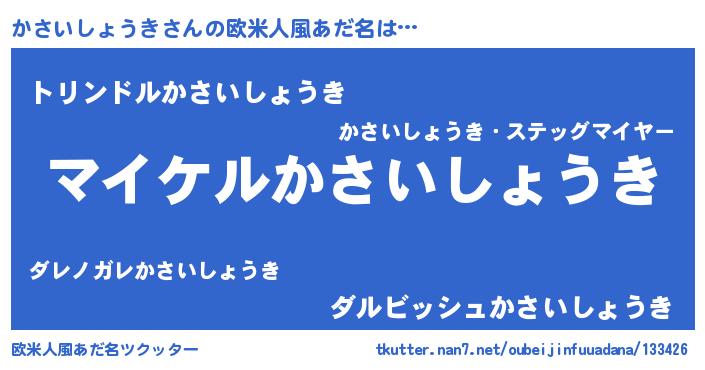 | 男性向けラノベタイトル風あだ名 | 『カサイショウキアートオンライン』 |