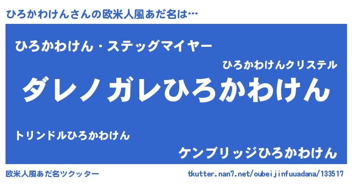| 男性向けラノベタイトル風あだ名 | 『この素晴らしい世界にひろかわけんを!』 |