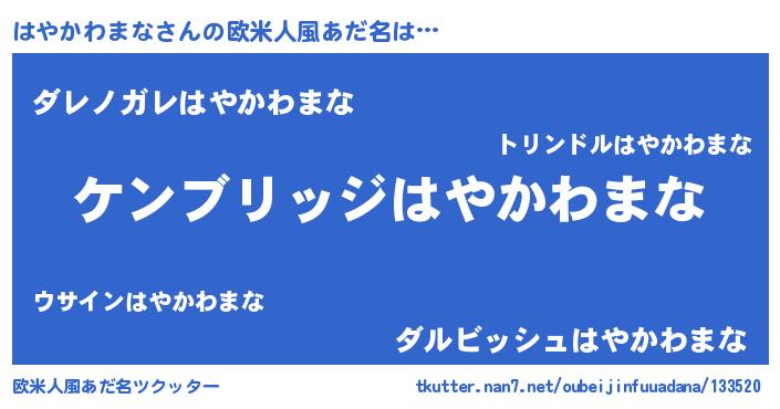 | 女子向けラノベタイトル風あだ名 | 『はやかわまなストレイドッグス』 |