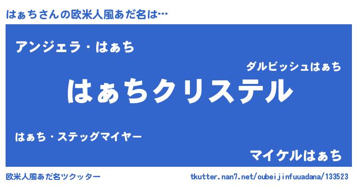 | ファンタジー風あだ名 | 『エターナルハァチー』『ハァフェル』 |